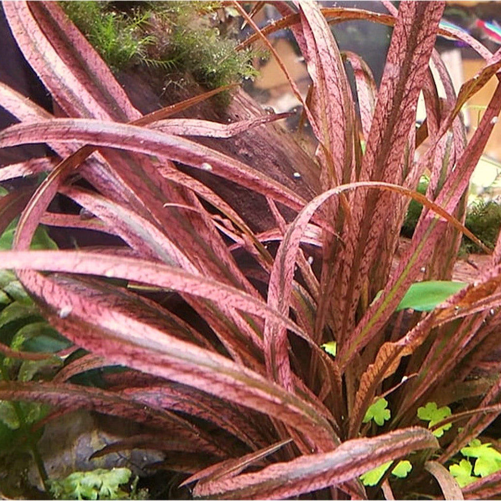 Cryptocoryne spiralis 'Tiger' is a popular, hardy aquarium plant known for its long, ribbon-like leaves with distinct dark tiger-like stripes, adding great texture and color (olive to reddish-brown) to the midground or background of planted tanks, thriving in nutrient-rich substrate and benefiting from moderate light and optional CO2 for best color, though it's beginner-friendly despite potential initial "melt"