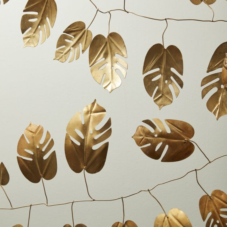 Gold monstera leaf garland.  Use for the holidays or get creative and use as home accent year round.