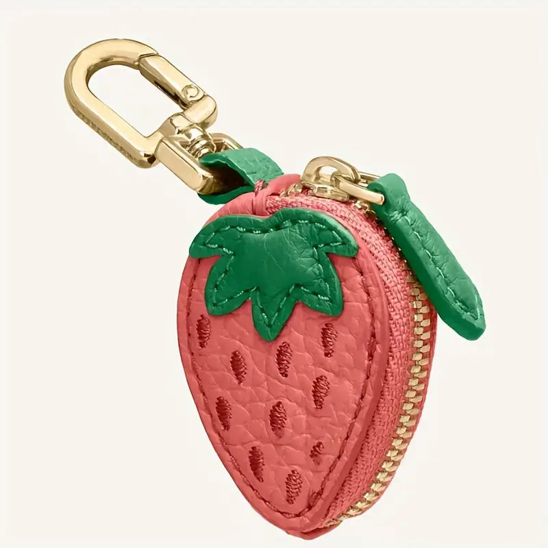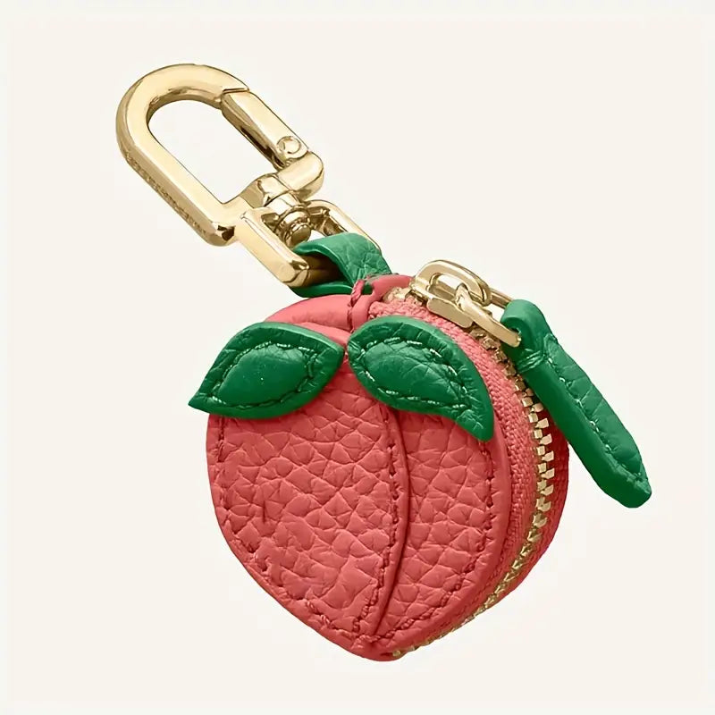 PU leather Fruit keychain charm. Small zipper pouch.