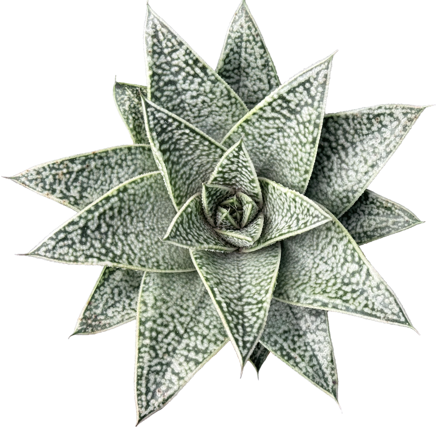 Thick, tongue-like green leaves that typically feature white spots or tubercles, a hallmark of the Gasteria genus.