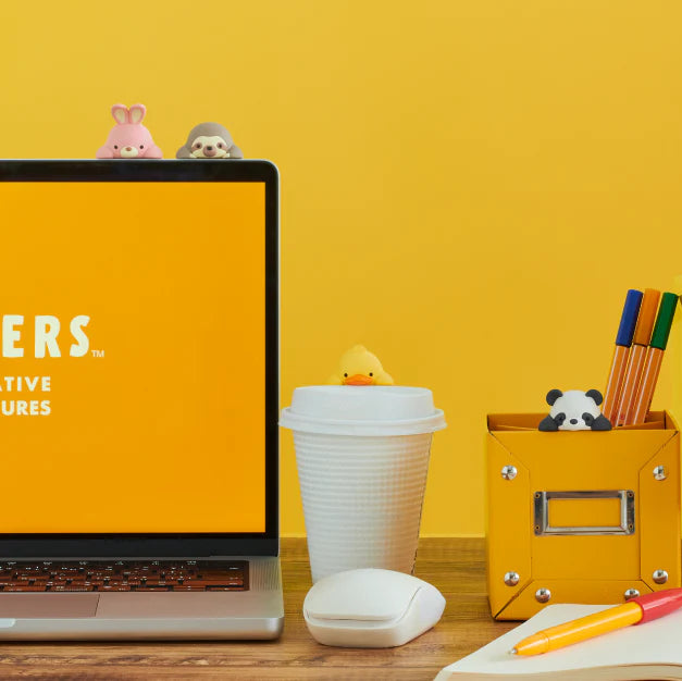 Each minifigure’s belly has a strip of removable adhesive tape attached. By peeling off the release paper, you can attach your HIPPER to devices like computers and smartphones or decorative items like pen holders and photo frames.