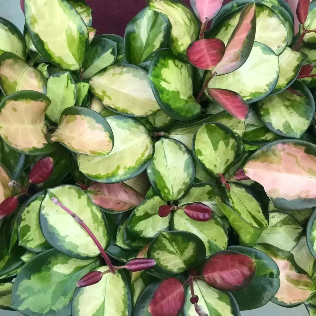 Aka Hoya Lisa. Succulent like leaves range from green, white, to pink. An epiphytic trailing/climbing vine with small clusters of fragrant flowers from Spring into Fall.