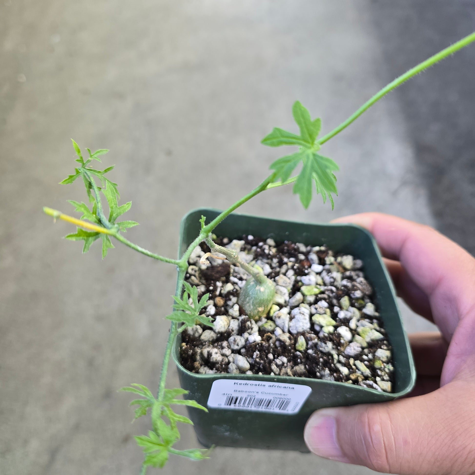 Kedrostis africana, commonly known as Baboon's cucumber, is a unique caudiciform plant native to Namibia and South Africa. It's characterized by a large, swollen, underground tuber (caudex) that supports slender, climbing or trailing vines.