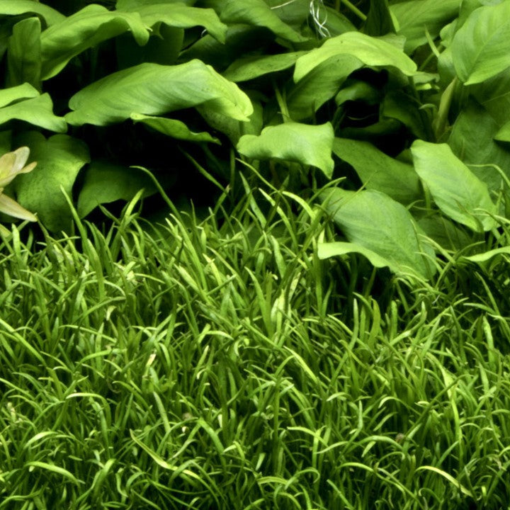 Lilaeopsis brasiliensis, known as Micro Sword, is a popular, easy-to-grow aquatic foreground plant that forms a lush, bright green carpet in aquariums and terrariums, spreading via runners and thriving in moderate to high light, nutrient-rich substrates, and a wide temperature range, even tolerating low brackish conditions. It requires planting small clumps with roots buried but crowns exposed, and while CO2 isn't essential, it promotes faster growth for a dense lawn effect