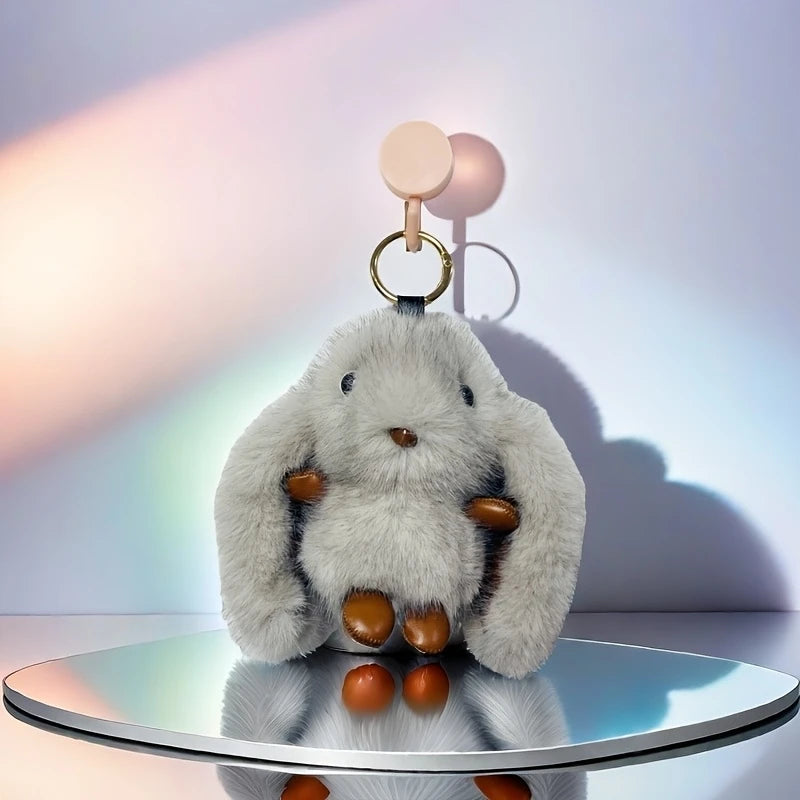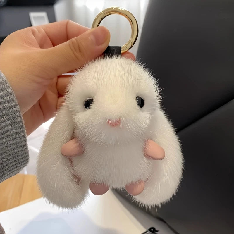 Faux fur bunny keychain charm. Accessorize your bag or keychain with this fun charm.
