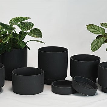 Black finish terra cotta planter with drainage hole and saucer