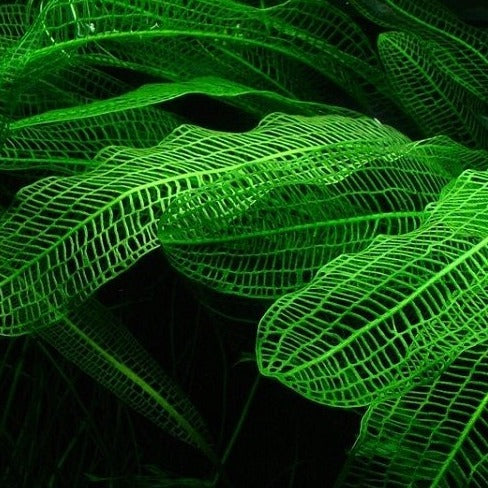 The Madagascar lace plant, also known as Aponogeton madagascariensis, is a popular aquatic plant native to Madagascar. It is known for its broad, long leaves with a delicate lace-like appearance. The plant's name comes from its fenestrated leaves, or "skeletonized" leaves, which sprout from a tuberous rhizome that can look like a bulb. The leaves can vary in length from just under 2 inches to almost 3 feet long, depending on the variety