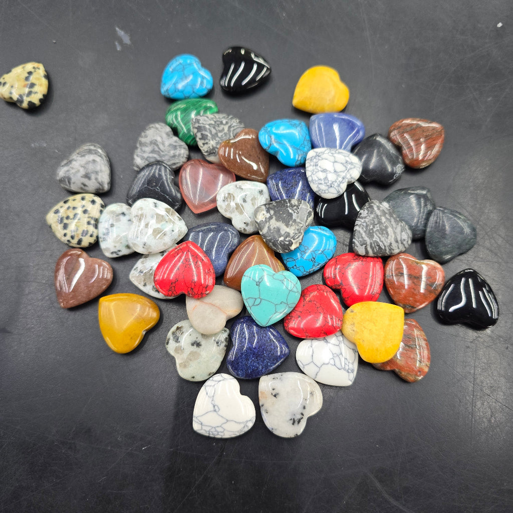 Assorted crystal hearts, often used in crystal healing and as gifts, symbolize love, compassion, and emotional well-being. Different types of crystals carved into heart shapes, amplify the specific healing properties associated with that stone, while the heart shape itself enhances the feeling of love and connection.