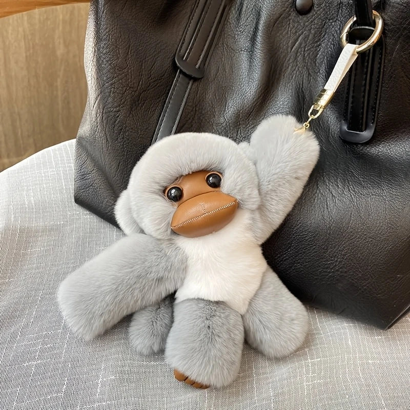 Faux fur monkey keychain charm. Accessorize your bag or keychain with this fun charm.