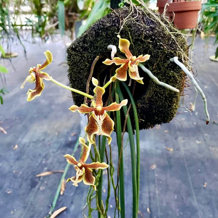 Paraphalaenopsis labukensis is an orchid commonly called the rat-tailed orchid and native to Borneo. It is most notable for its very long narrow leaves; in the wild they reach 1.2 m long, while in cultivation they may grow longer than 2 m.