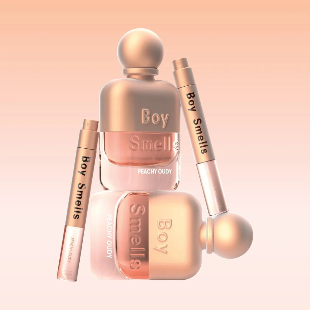 The top notes are peach skin and tangerine, followed by a heart of mimosa flower and marigold, and a base of white oud and sugared apricot.