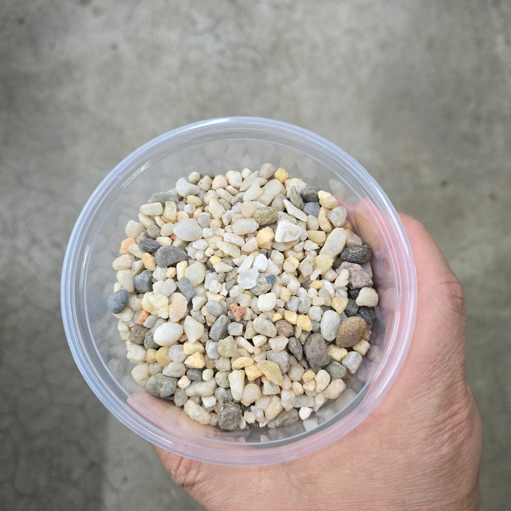 Pea gravel in neutral tones to add to aquariums, terrariums, or decorations.