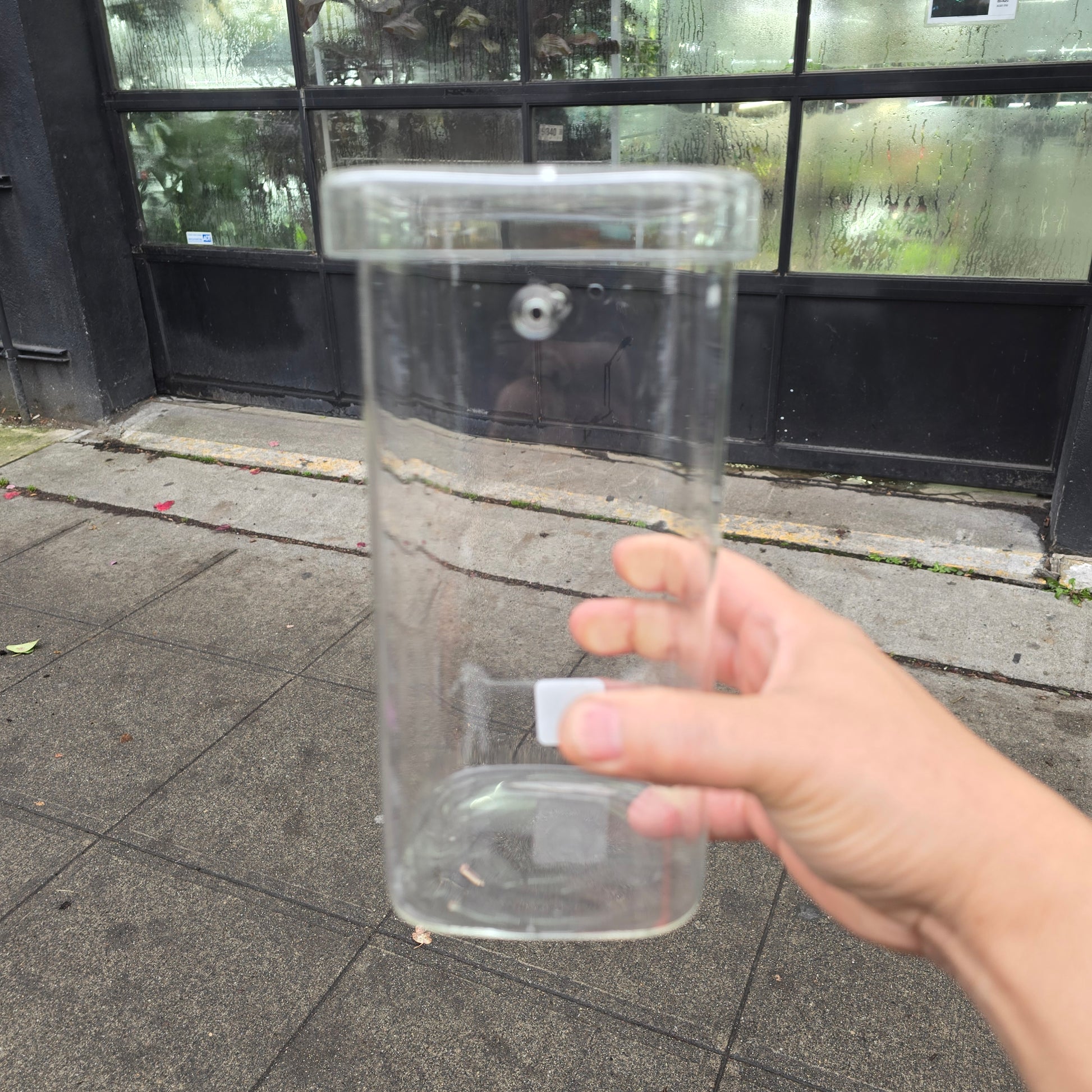 Sunken glass lid with hole for droplet watering